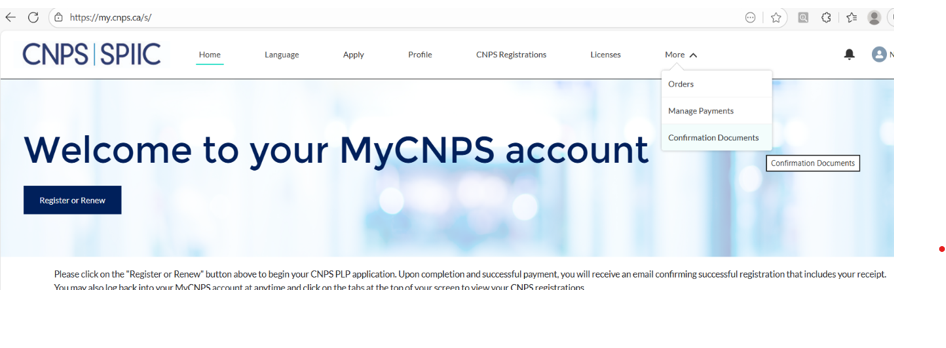 Proof of PLP can now be obtained through the MyCNPS portal. Login to your account, go to the ‘Confirmation Documents’ tab and follow the steps to obtain your written confirmation of CNPS PLP.